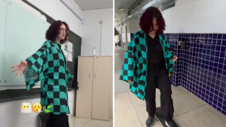 Professora vira Tanjiro, anda de skate, conquista alunos e chama a atenção de streaming dos EUA