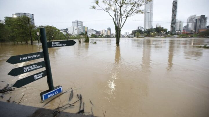 Chuva torrencial castiga cidade em SC, tira moradores de casa e transforma ruas em rios