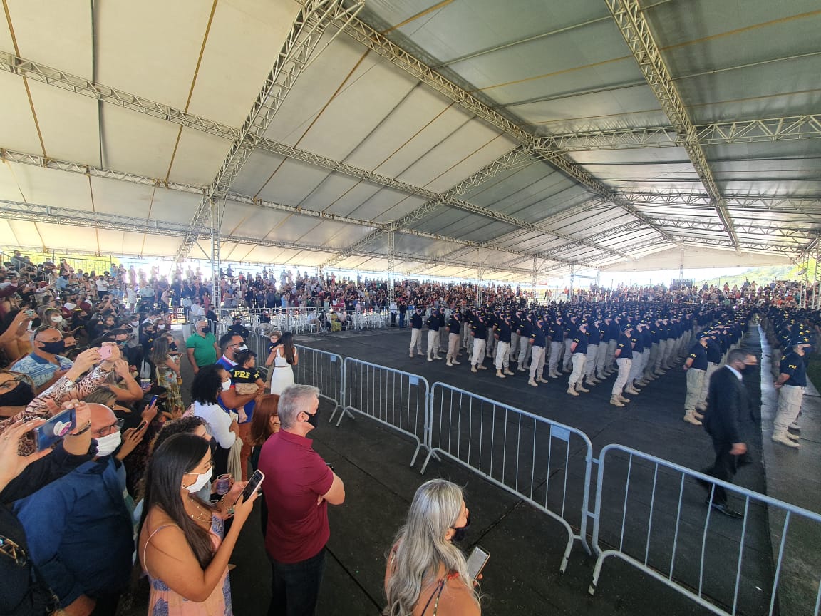Formatura da PRF com Bolsonaro em SC tem aglomeração e desrespeito a regras sanitárias