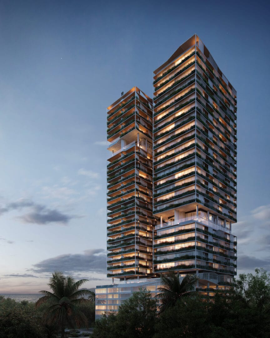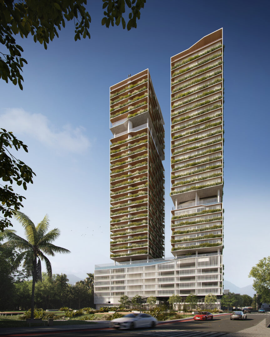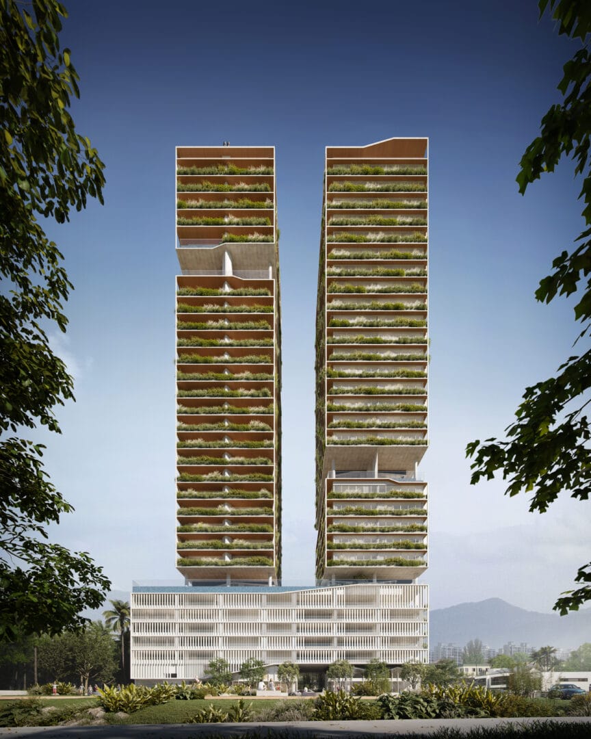 O segundo eixo, Design e Edificações, propõe a criação de uma identidade arquitetônica sofisticada, com edificações sustentáveis, fachadas 360º e integração visual com a cidade. Exemplo é o Namar Phacz Home, projeto de empreendimento frente ao mar assinado pela Architects Office, do arquiteto Greg Bousquet.