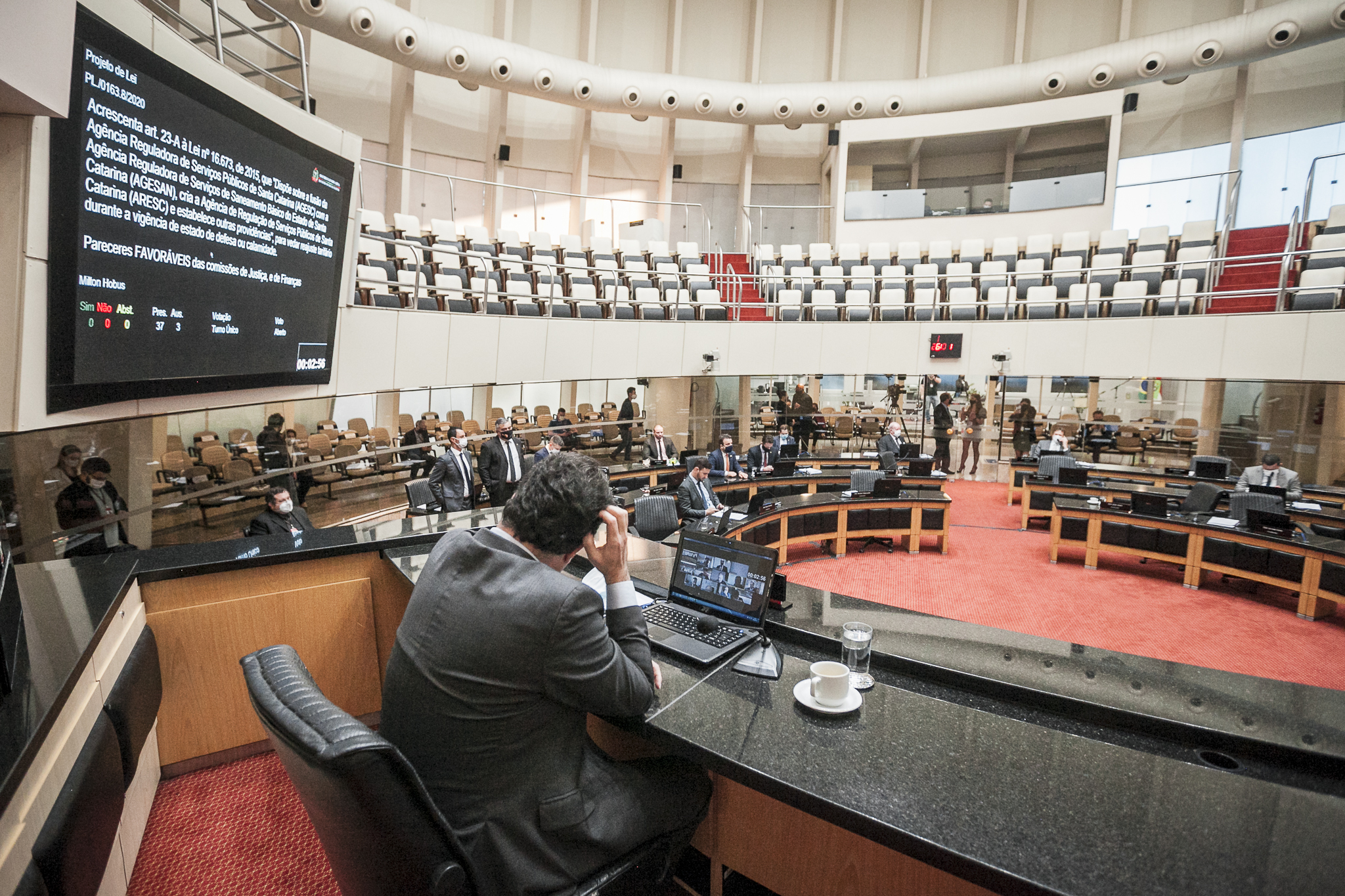 Foi aprovada nesta quarta-feira na Alesc a proibição de reajuste de tarifas públicas como luz, água e gás durante a pandemia em Santa Catarina. O projeto de Milton Hobus (PSD) ganhou força após o anúncio recente da Celesc de aumento no valor da energia elétrica. O reajuste médio foi de 8,14%. Mas o protocolo do projeto ocorreu quando a Casan decidiu mudar a forma de cálculo do valor da tarifa de água no Estado. A proposta de Hobus passou pela Assembleia com um voto contrário, de Bruno Souza (Novo).