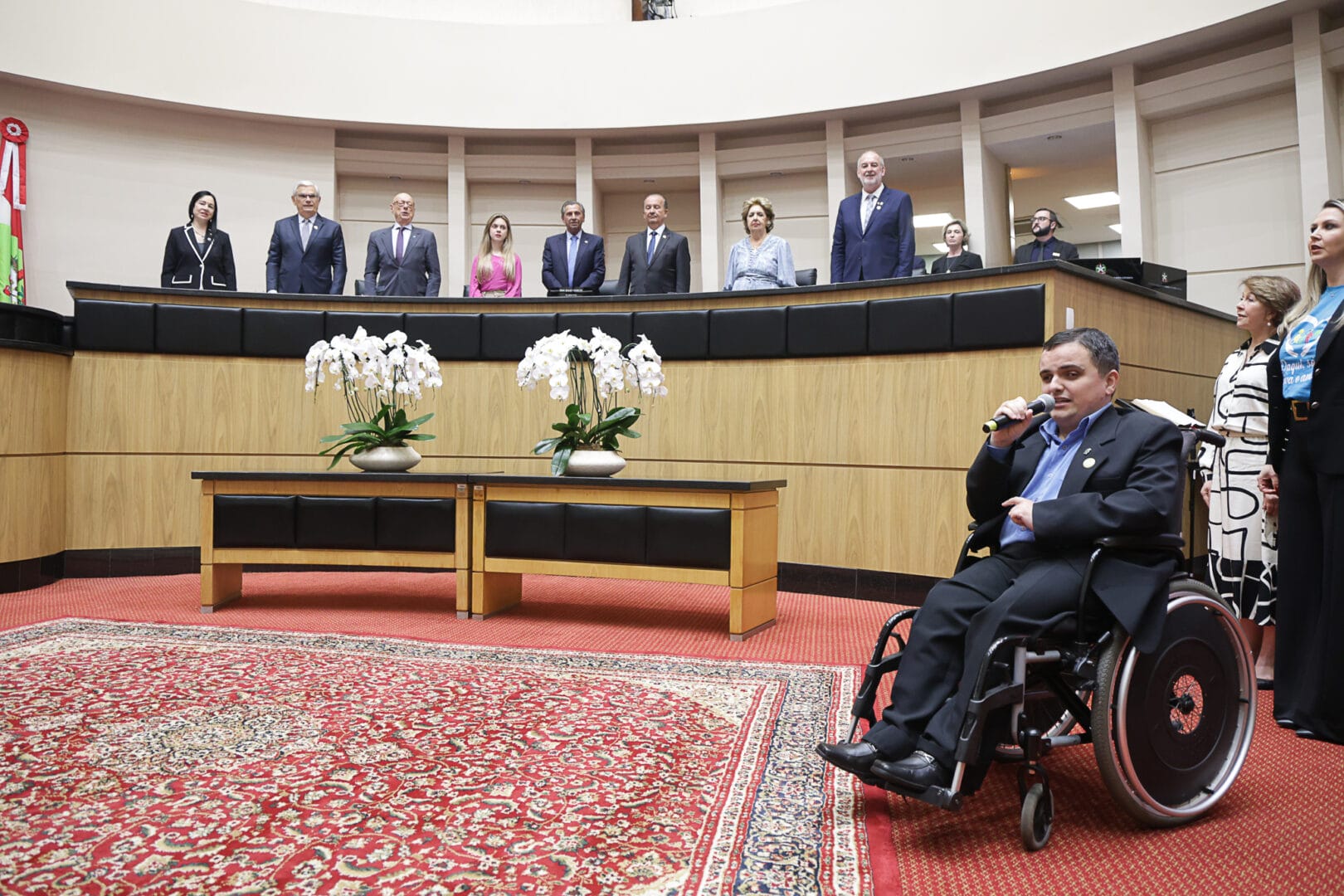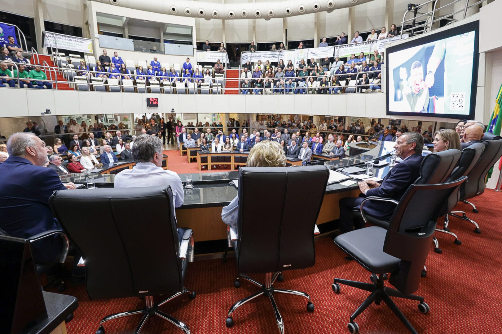 Foi prestigiada a sessão especial da Assembleia Legislativa de Santa Catarina (Alesc), nesta segunda-feira (24), que marcou os 20 anos da Lei das Apaes (veja fotos abaixo). Proposta pela Mesa Diretora da Casa, por indicação do presidente do Parlamento, deputado Julio Garcia (PSD), autor da Lei, a solenidade lotou o plenário em uma noite marcada por emoção, homenagens, reconhecimento e celebração da trajetória de inclusão construída pelas APAEs catarinenses.