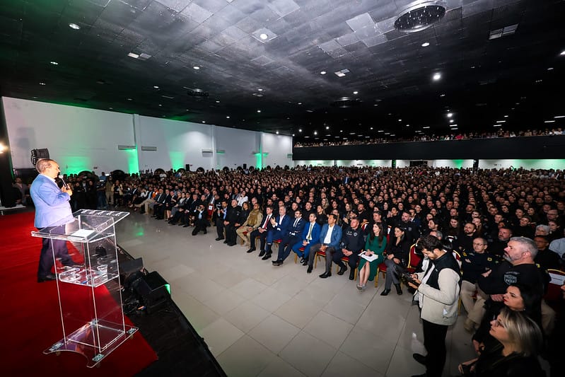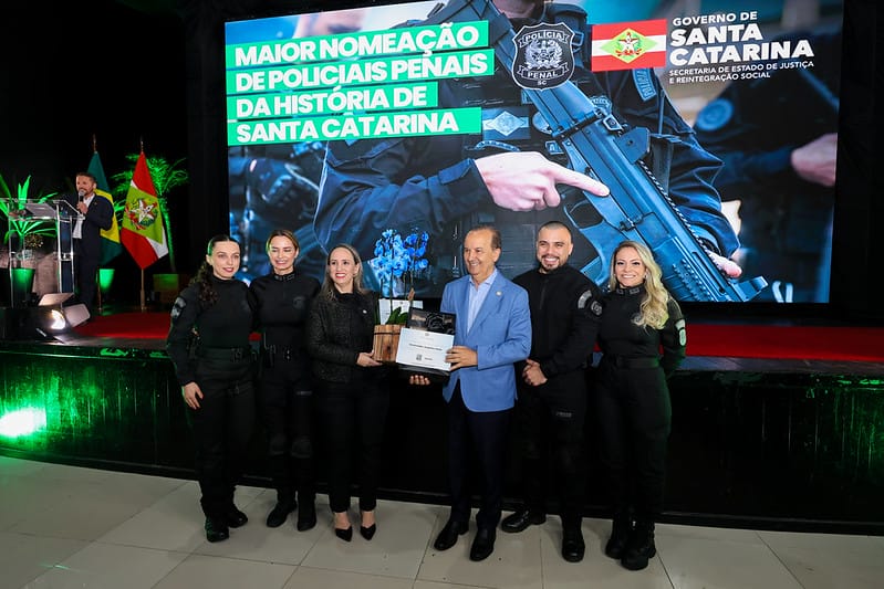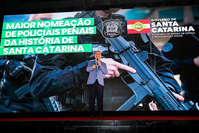 A emoção deu o tom na formatura de 1.644 policiais penais de Santa Catarina, nesta quinta-feira (30). Antes do discurso, o governador Jorginho Mello (PL) pediu um minuto de silêncio em homenagem aos policiais que morreram em confronto com traficantes do Comando Vermelho, na terça-feira, no Rio de Janeiro. Ao final da homenagem, houve uma forte salva de palmas da plateia, composta por policiais novos e antigos, além de familiares dos formandos. Ainda nesta quinta-feira, o governador esteve no Rio de Janeiro para prestar apoio ao governador Cláudio Castro.