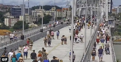 Somente durante a manhã, o perfil divulgou sete gifs diferentes com as imagens atualizadas do trânsito de pessoas. Uma das câmeras também mostra a movimentação na cabeceira Insular da estrutura. Acesse o perfil e veja as imagens.