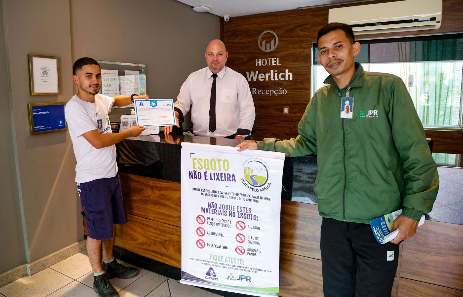 Uma campanha da Companhia Catarinense de Águas e Saneamento (CASAN) na quarta maior cidade de Santa Catarina está fazendo um alerta para a população local. Técnicos da empresa foram até uma área de hotéis e grandes condomínios na bacia do Rio Araújo, em São José, na Grande Florianópolis. A iniciativa integra o programa Trato pelo Araújo e tem como objetivo ampliar o diálogo junto à comunidade e aos visitantes sobre a importância do uso adequado das instalações sanitárias. O principal alerta é: “vaso sanitário não é lixeira”.