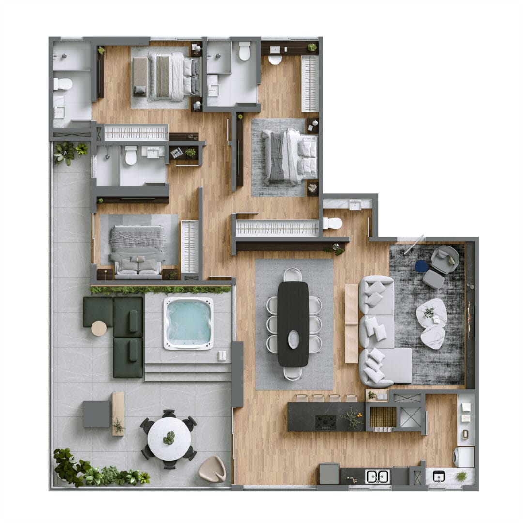 – Aplicar o conceito ‘puzzle living’ em um edifício vertical foi um desafio técnico e criativo que investimos desde o início. Alternar seis plantas ao longo da torre exigiu um trabalho minucioso de compatibilização entre arquitetura, engenharia e desempenho estrutural. Em contrapartida, conseguimos ganhos importantes, como mais privacidade entre as unidades, melhor ventilação natural e aproveitamento inteligente da luz solar. O resultado é um edifício com linguagem arquitetônica única, que se diferencia no entorno urbano e eleva o padrão de qualidade habitacional – afirma Esdras Constantino, diretor comercial e de marketing da PHACZ Empreendimentos.