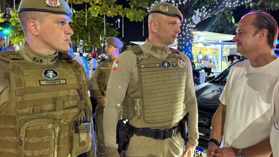 O chefe da PM “desceu pra BC” após ter acompanhado a virada em Florianópolis, na Beira Mar Norte, ao lado do governador Jorginho Mello (PL). As duas cidades concentram as maiores festas de Réveillon do Estado e demandam esforço de policiamento. Ambas começaram 2026 sem registro de nenhuma ocorrência grave.