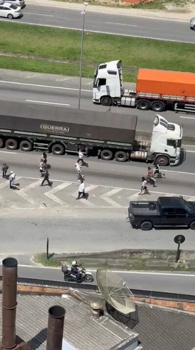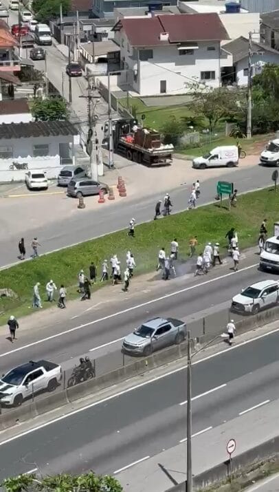 As cenas que circulam desde a manhã desta quinta-feira (4) na BR-101, em Itapema, são estarrecedoras. Um grupo de “torcedores” do Santos interrompeu a principal rodovia do Brasil para tentar atacar um ônibus com torcedores do Internacional de Porto Alegre. A cena foi gravada, filmada, divulgada aos quatro ventos. Não há paixão esportiva ali. Não há amor a clube. O que se vê é uma ação criminosa.