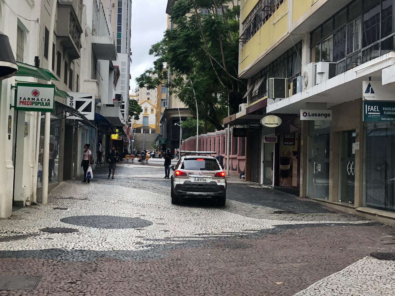 Policiais militares começaram nesta quarta-feira o trabalho de orientação em estabelecimentos comerciais de Santa Catarina sobre a determinação do governo do Estado de restrições de circulação, como o fechamento de restaurantes e comércio por conta do novo coronavírus. Somente em Florianópolis, 60 servidores percorreram as ruas em quartetos, de acordo com o tenente-coronel Dhiogo Cidral, comandante do 4º Batalhão da PM.