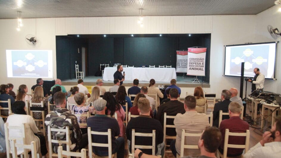 Um cena registrada durante uma audiência pública promovida pela Assembleia Legislativa de Santa Catarina (Alesc), nesta semana, tem repercutido. O fato ocorreu em Alfredo Wagner, na Serra Catarinense, durante a reunião sobre proteção animal liderada pela comissão de Proteção, Defesa e Bem-Estar Animal. O presidente do grupo é o deputado Marcius Machado (PL), que fez as pessoas “uivarem” para imitar cachorros durante uma parte do encontro (veja fotos e vídeos abaixo).