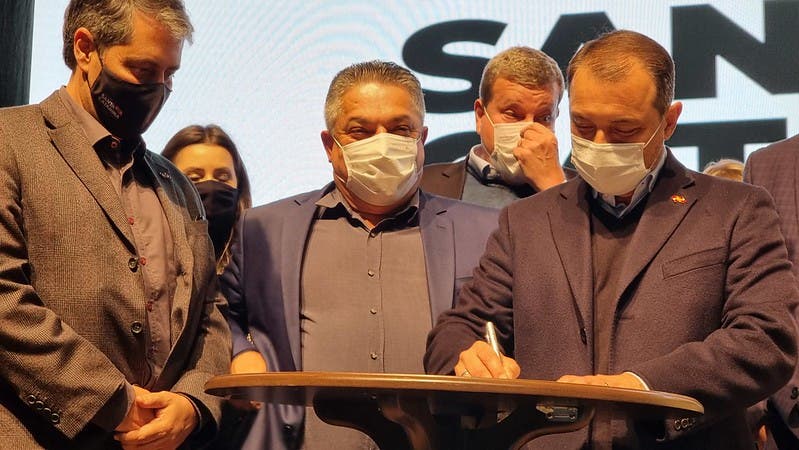 Um detalhe interessante da foto acima vale ser registrado. Moisés e João Rodrigues estão em primeiro plano na imagem, junto com o secretário de Estado da Saúde, André Motta Ribeiro. Mas, ao fundo, aparece Luciano Bulligon, ex-prefeito de Chapecó, e aliado de Moisés desde 2019. Bulligon, inclusive, se filiou ao PSL do governador.