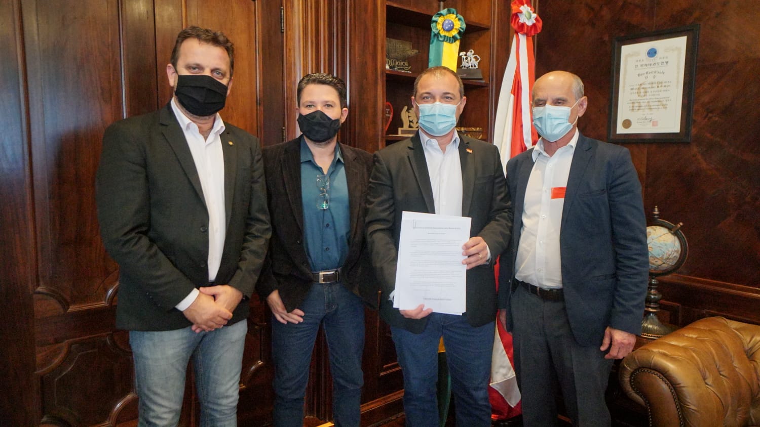 Os movimentos pelo comando do governo do Estado estão acelerados nos últimos dias. Afastado da função, o governador Carlos Moisés da Silva (PSL) recebeu apoio de 50 prefeitos e vices do Alto Vale do Itajaí, nesta segunda-feira (3). A manfestação chegou através de um documento entregue pessoalmente pelo deputado estadual Jerry Comper (MDB), pelo prefeito de Ilhota, Erico de Oliveira (MDB), e pelo vice-prefeito de Ibirama, Jucélio José de Andrade (MDB). Ambos estiveram na Casa D’Agronômica em encontro com Moisés (foto acima).