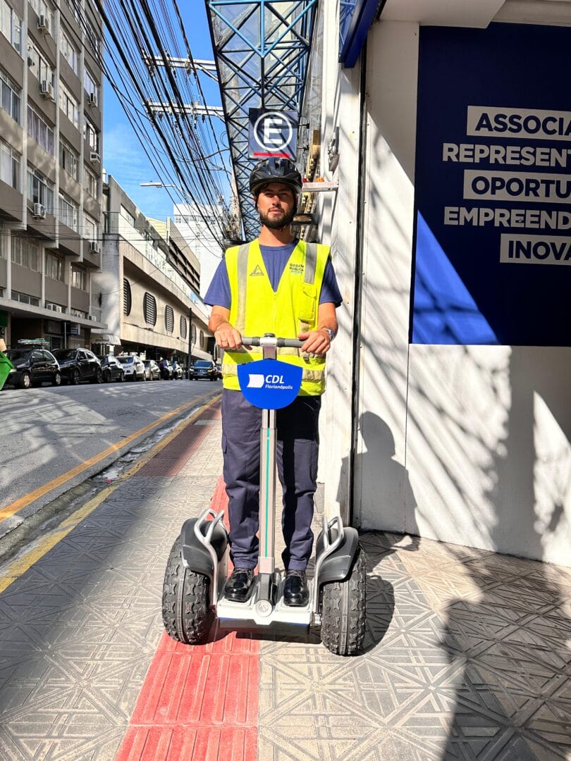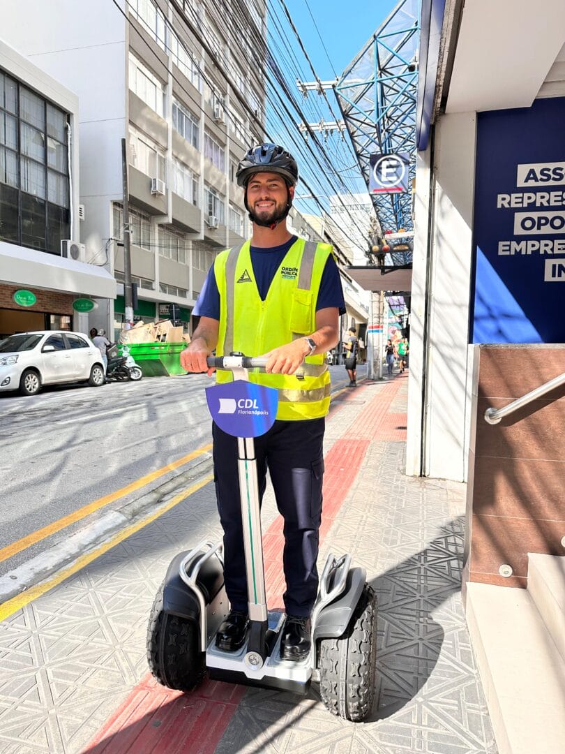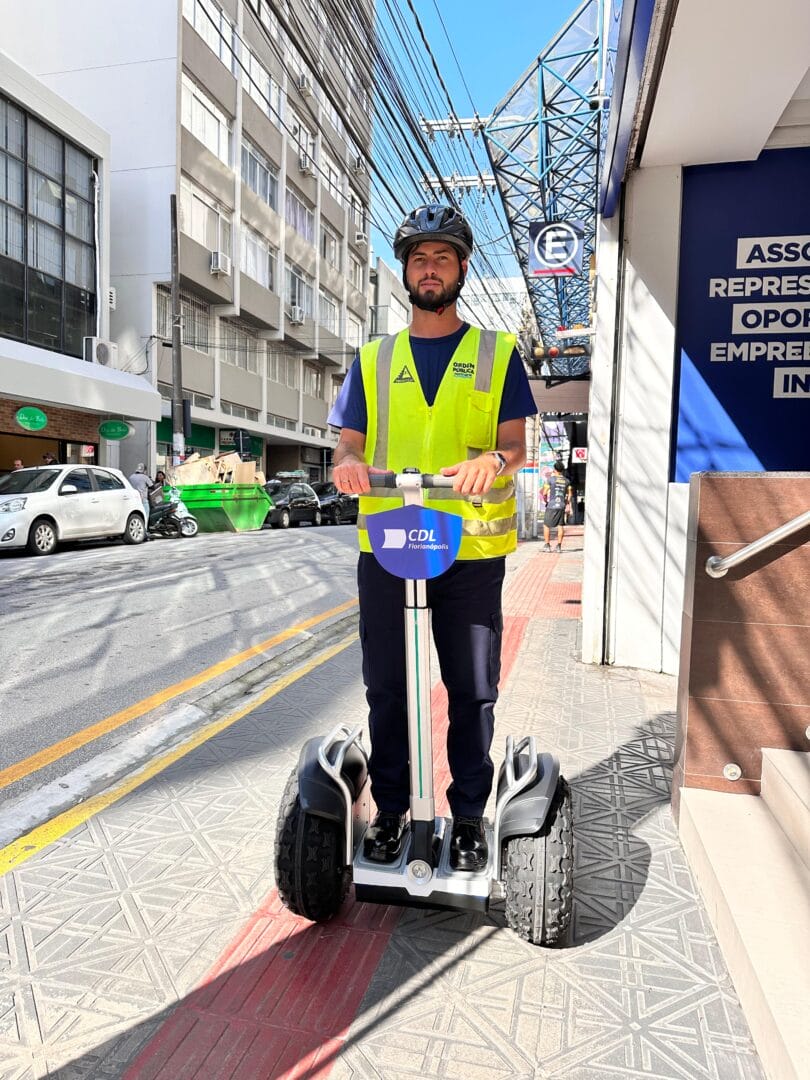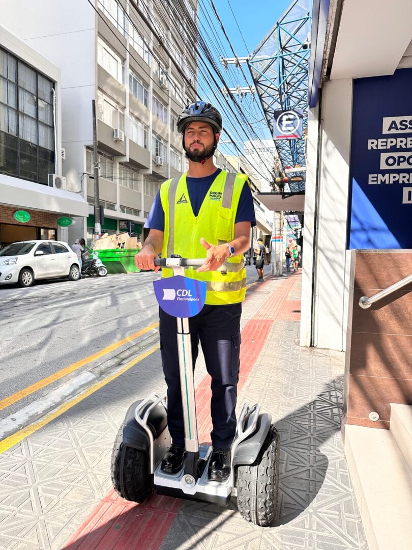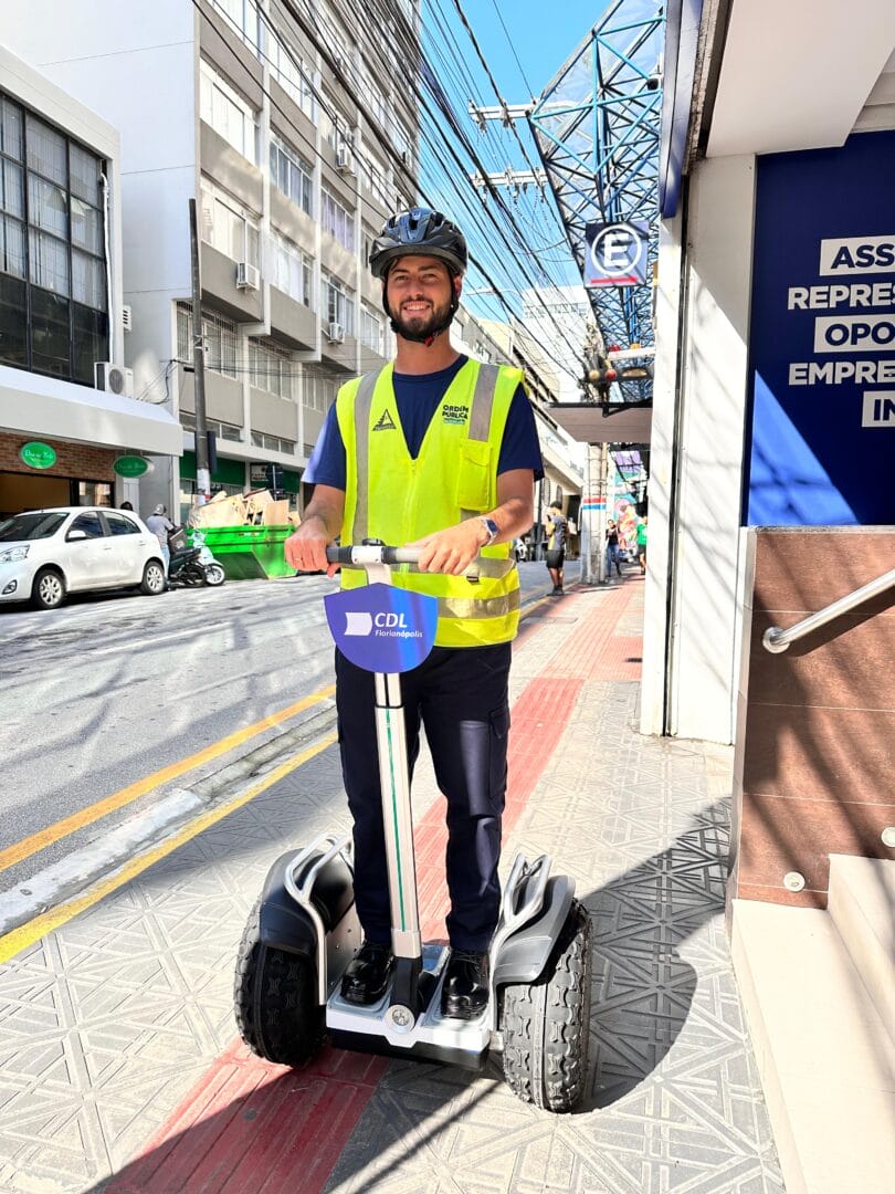Agentes com colete de cor “marca-texto” tem circulado pelo Centro de Florianópolis nas últimas semanas. Recentemente, ainda ganharam reforço de diciclos doados pela Câmara de Dirigentes Lojistas (CDL), o que chama ainda mais a atenção da presença nas ruas. Os agentes são contratados pela prefeitura da Capital para atuar na Ordem Pública.