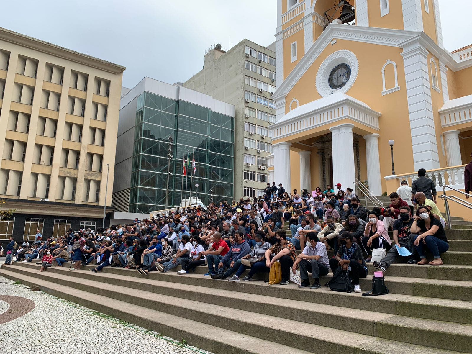 Não há como ficar sem reação ao ver centenas de moradores de Florianópolis sentados na escadaria da Catedral Metropolitana, na manhã desta segunda-feira (8). Com currículos nas mãos, eles procuravam por uma das vagas de trabalho disponíveis no Feirão do Emprego promovido pela prefeitura. Ao mesmo tempo que o evento traz esperança para quem espera por uma oportunidade, a imagem acima é o retrato do desemprego na Capital catarinense.