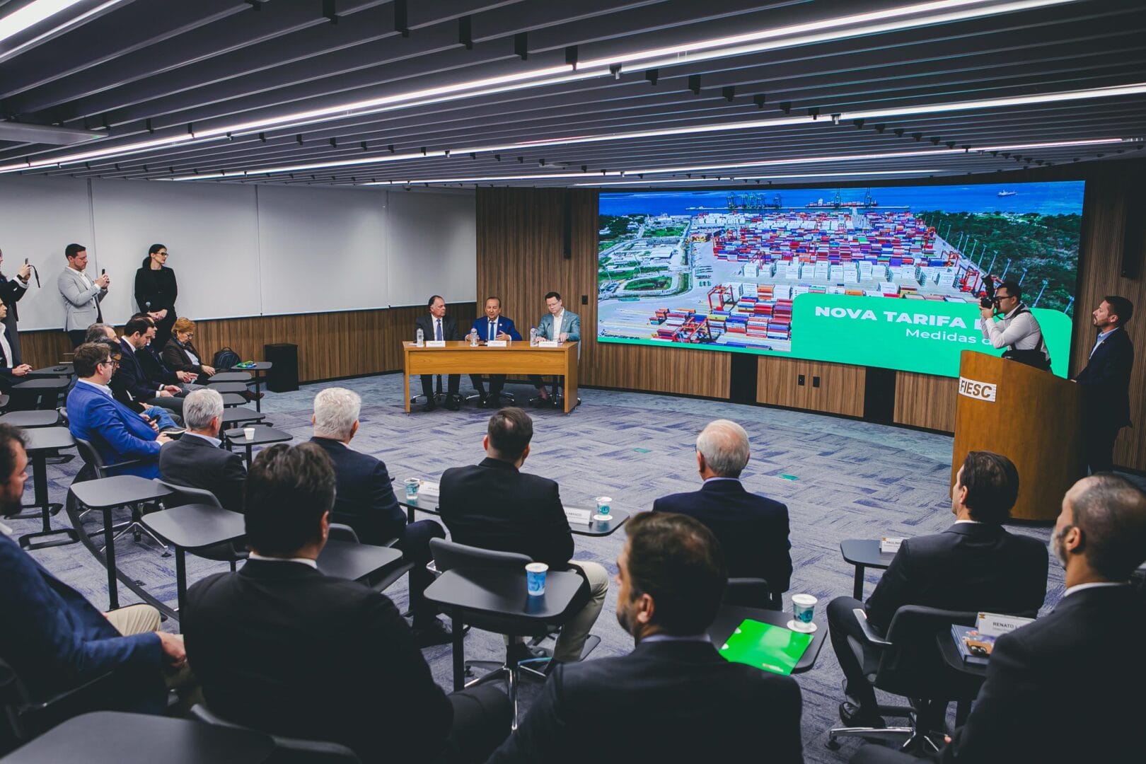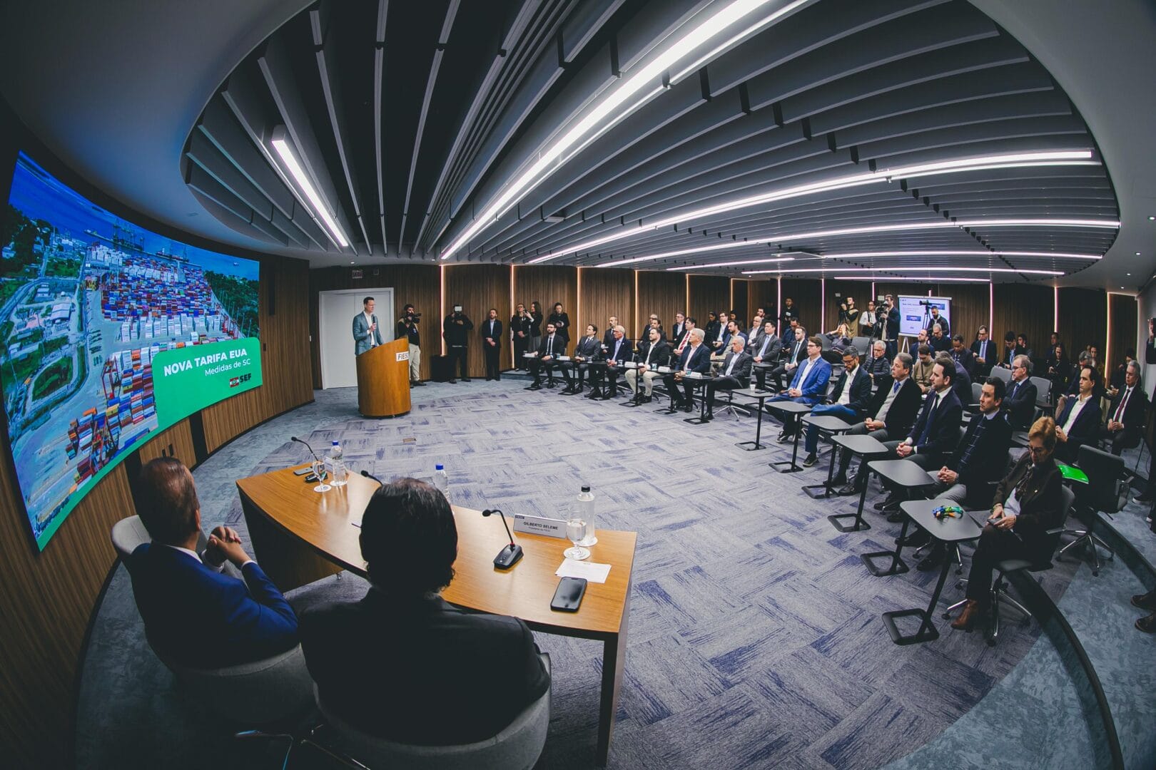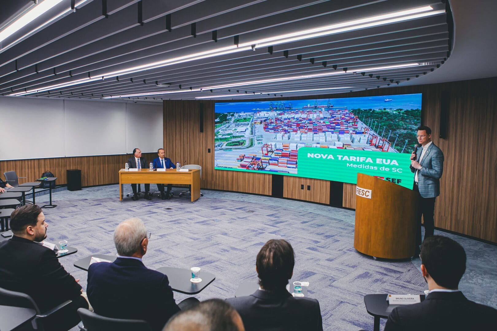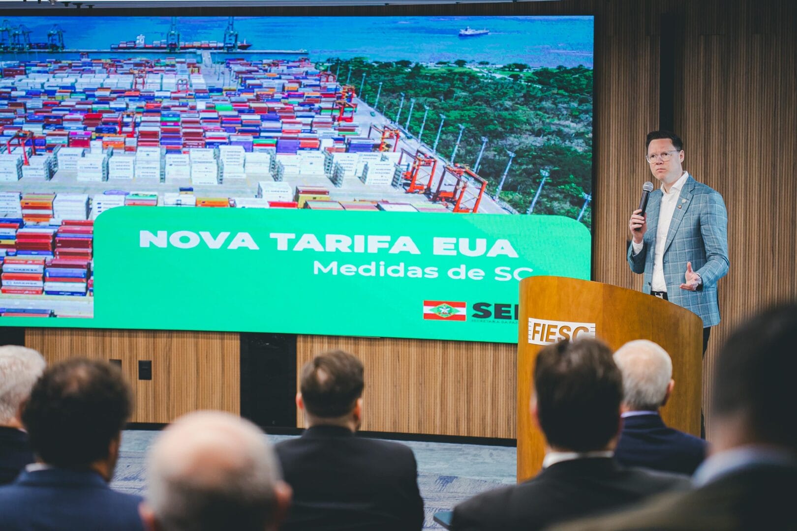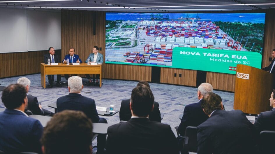 Participaram do anúncio o governador Jorginho Mello (PL), o secretário da Fazenda, Cleverson Siewert, e o presidente da Fiesc, Gilberto Seleme. Segundo levantamento da Fazenda do Estado, Santa Catarina exportou R$ 9,9 bilhões aos EUA em 2024. Cerca de 95% do volume total exportado (R$ 9,4 bilhões) está diretamente exposto à nova tarifa.