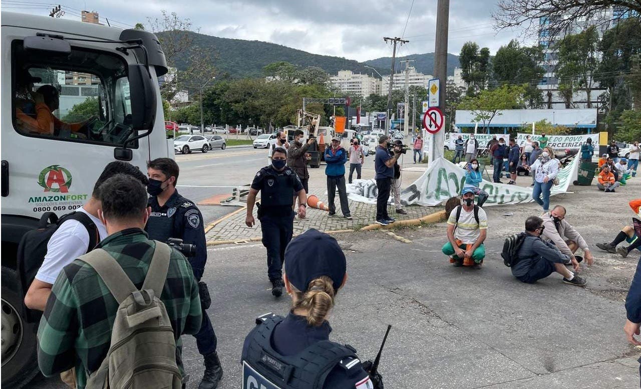 > Manifestação na Comcap tem gás de pimenta, agressão e bala de borracha em Florianópolis