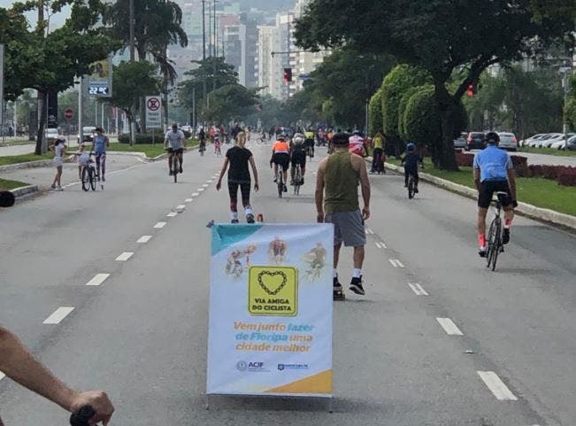 O fechamento da Beira-Mar Norte para o uso de ciclistas e pedestres aos domingos teve uma alteração importante neste último fim de semana. Diferentemente do que ocorria antes, agora somente as pistas do meio, que levam para o sentido Norte da Ilha, ficam interditadas. Assim não há bloqueio em nenhum sentido já que a marginal continua aberta.