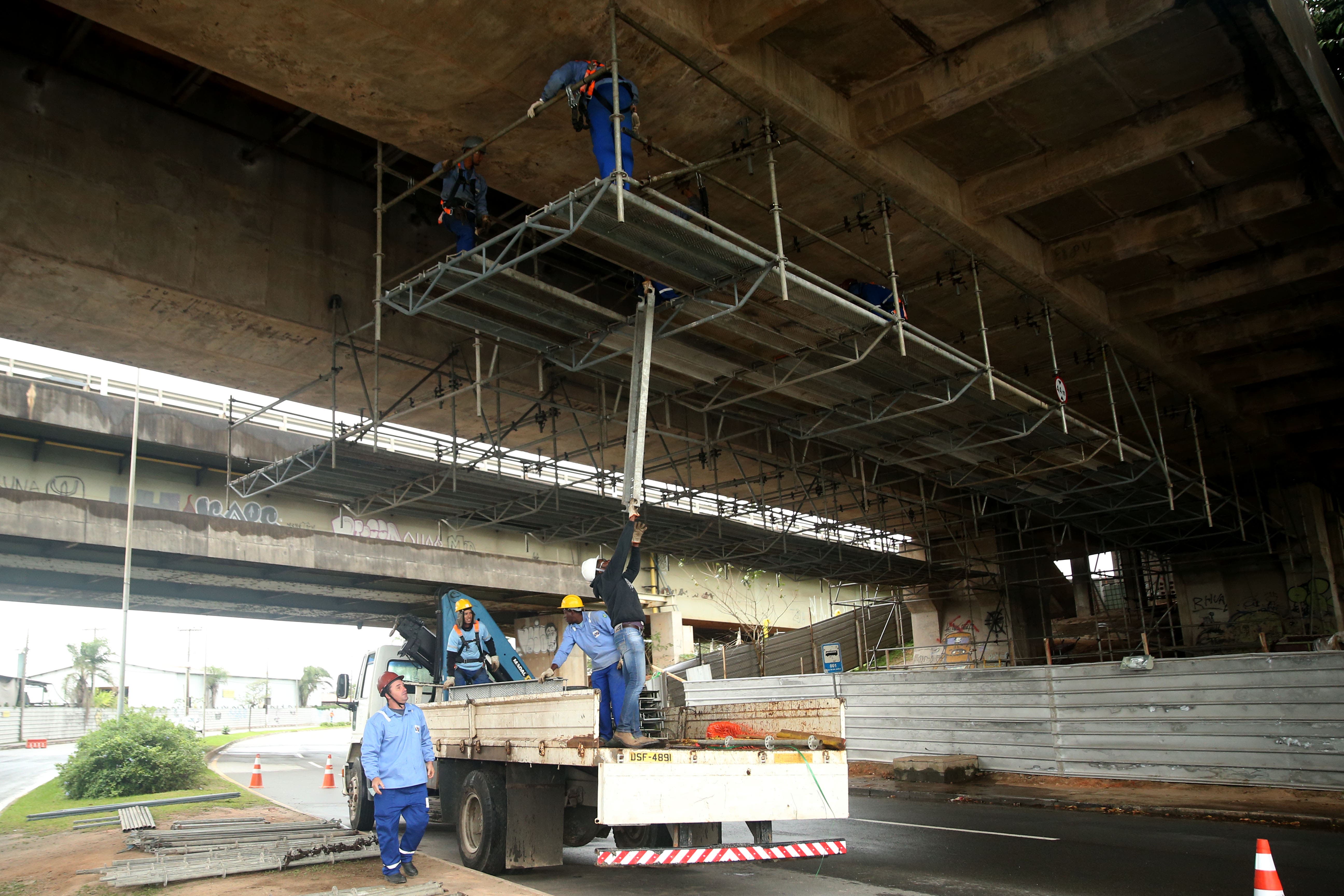 A obra de recuperação das pontes Pedro Ivo Campos e Colombo Salles começa a dar sinais de avanço. Os operários estão montando os andaimes na estrutura que entra na Ilha. Segundo a secretaria de Infraestrutura, o trabalho será nesta ordem: limpa, recupera e pinta.