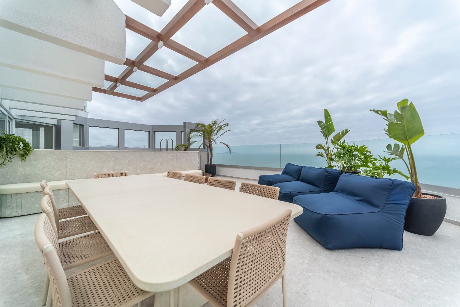 Uma cobertura duplex localizada em um do pontos mais visados para o Réveillon no Brasil está à venda. De frente para o mar de Balneário Camboriú, a mansão nas alturas tem preço de R$ 25 milhões, e está pronta para morar. Com vista para toda a orla, a cobertura de 421 m² está mobiliada e decorada. O renomado corretor de imóveis Bruno Cassola, que tem 18 anos de experiência no mercado de alto padrão no Sul do país, divulgou um tour interno pelo imóvel nas redes sociais.