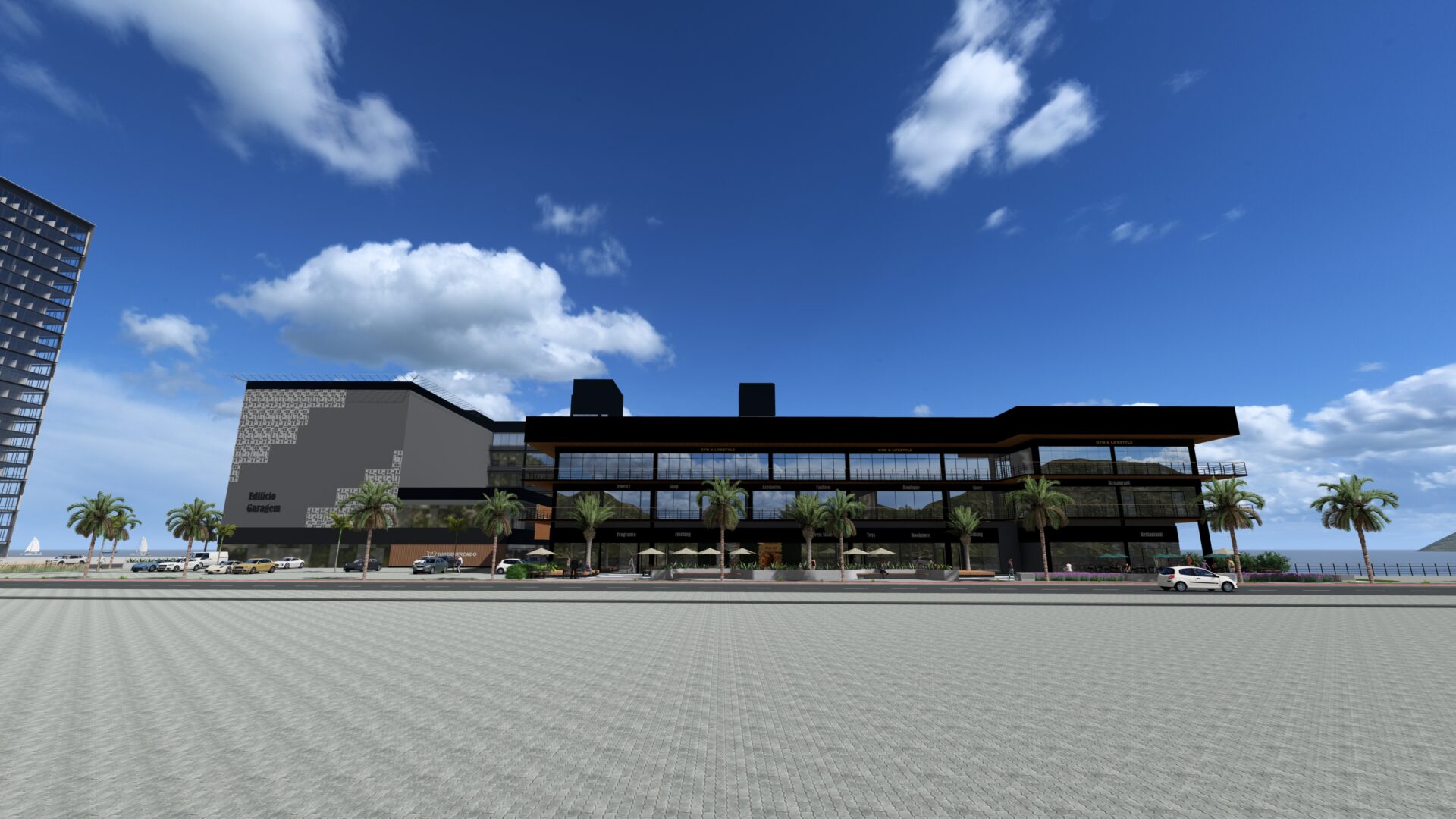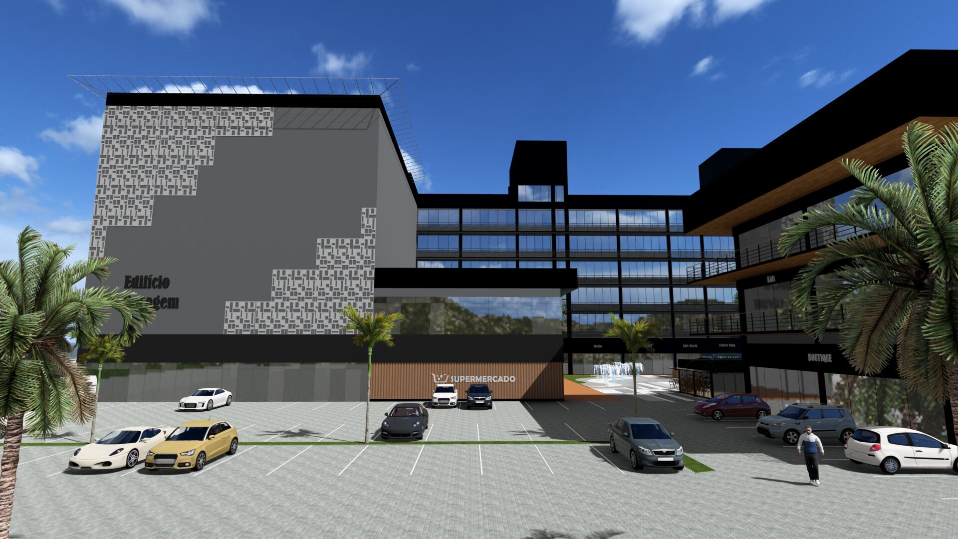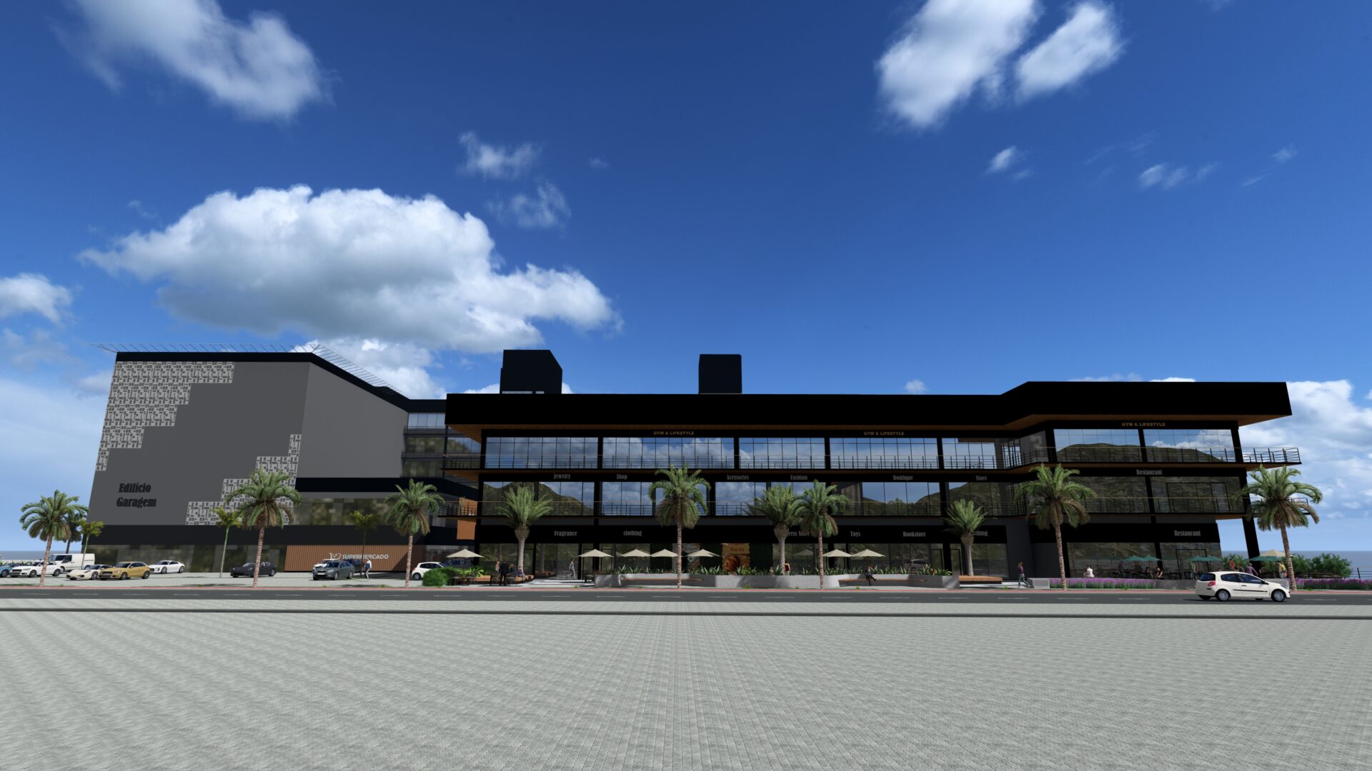 A estrutura abrigará também um coworking de 747 m², salas comerciais a partir de 37 m², quiosques e escritórios distribuídos em cinco pavimentos, além de um edifício garagem com 500 vagas de estacionamento.