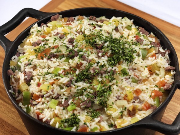 Esta receita tipicamente brasileira, ainda é preparada em muitos lugares em panela de ferro. Fazem parte dela arroz cateto, cebola, alho, salsa, charque e o óleo vegetal. Com o tempo, o charque, que é um tipo de carne seca, foi sendo substituído por sobras do tradicional churrasco do final de semana, que ainda incluem linguiça, tomate e ovos cozidos. Nela é possível substituir o arroz cateto por arroz arbório, carnaroli e até o arroz para sushi.