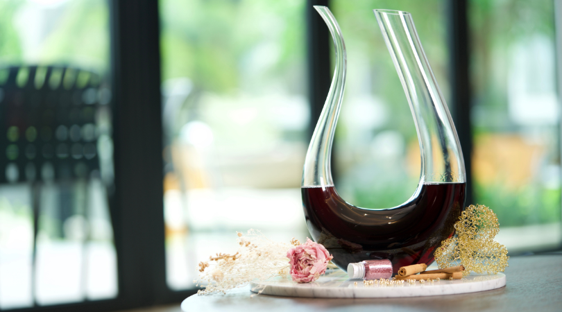 O decanter aumenta a superfície de contato entre o vinho e o ar e o processo de oxigenação da bebida é acelerado.