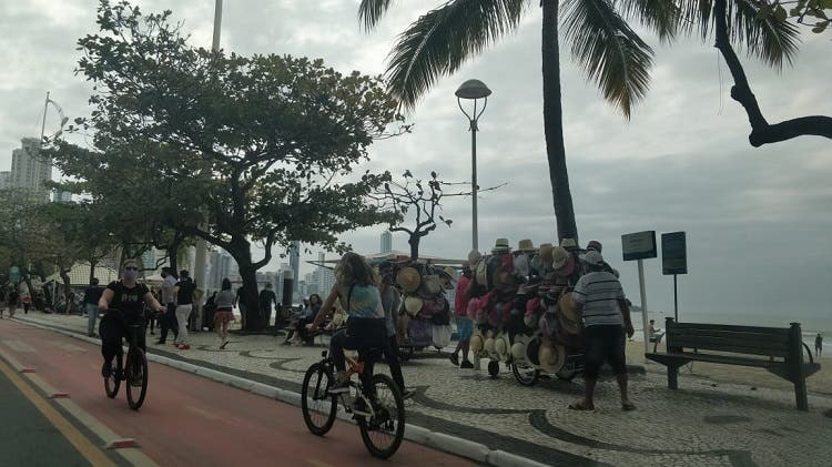 A prefeitura instalou pontos de fiscalização da Guarda Municipal ao longo da Avenida Atlântica. Apesar do movimento intenso, a maioria das pessoas tem respeitado a obrigatoriedade do uso de máscara. Outra regra, a de não permanecer na areia, tem menor índice de adesão. Algumas famílias instalaram as cadeiras em frente ao mar, mesmo sem sol.