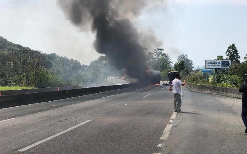O acidente aconteceu no sentido Norte da rodovia e provocou cerca de 10 quilômetros de congestionamento nos dois sentidos. Com a batida, dois pneus em chamas foram lançados para a pista no sentido Sul, mas não atingiram nenhum outro veículo. Um dos caminhões é basculante, e o outro do tipo baú. Um deles carregava pallets de madeira, e o outro carvão vegetal.