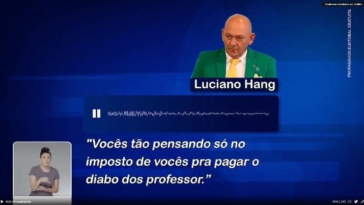 A Justiça Eleitoral negou um pedido do PL e de Jorginho Mello para tirar do ar a propaganda eleitoral de Décio Lima (PT) que trouxe um áudio de Luciano Hang, da Havan. O empresário aparece pedindo a demissão de professores ao secretário da Fzenda, Paulo Eli. O juiz auxiliar Otavio José Minatto entendeu que não há provas de que o conteúdo seja falso ou descontextualizado – e por isso a divulgação está de acordo com a liberdade de expressão.