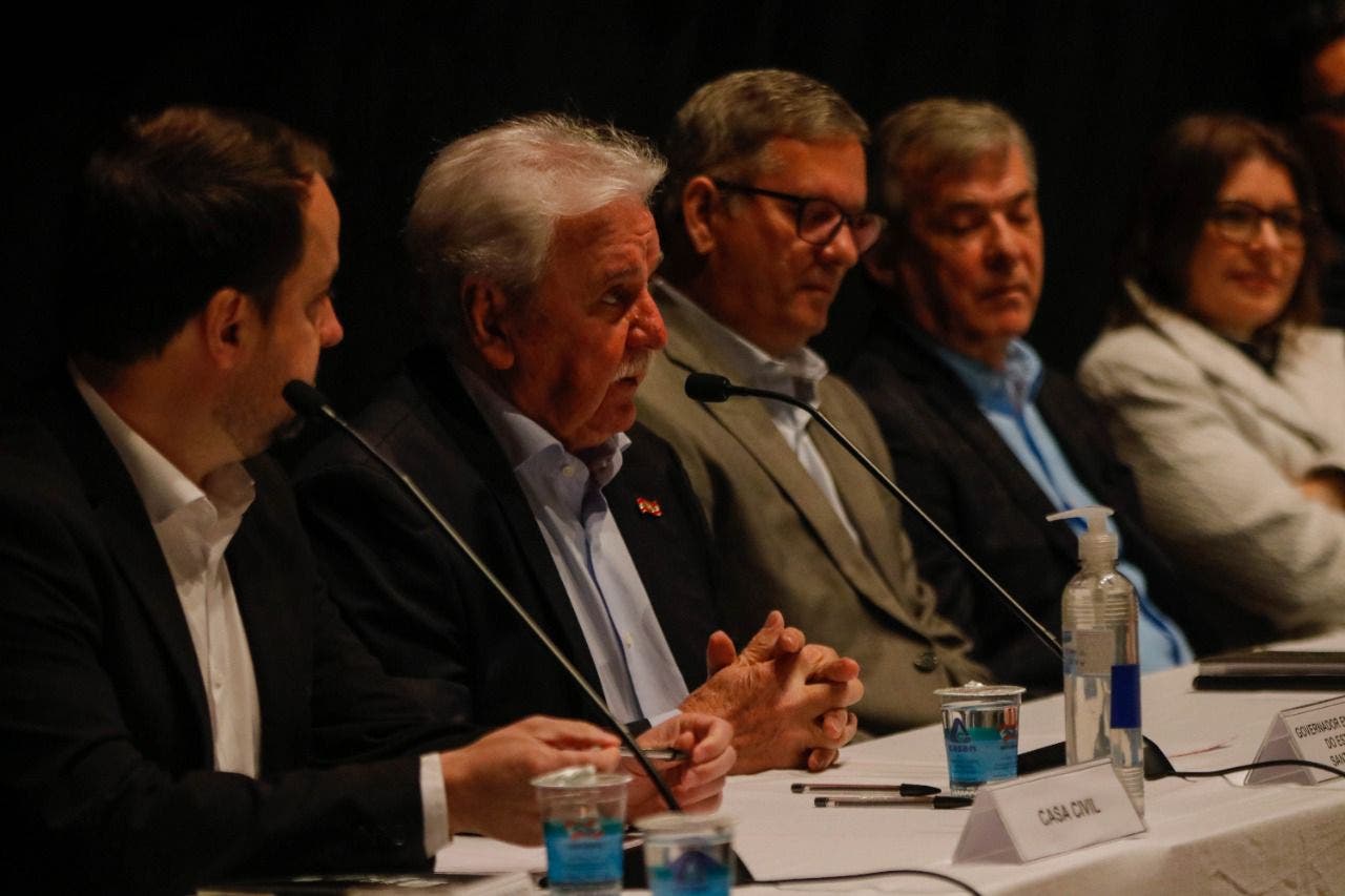 O governador em exercício, Moacir Sopelsa (MDB), assinará ordens de serviço para obras em duas rodovias estaduais nos próximos dias – na SC-283, no trecho entre Concórdia e Arabutã, e na SC-355 entre Jaborá e a BR-282. Nesta segunda-feira (5), o secretário de Estado de Infraestrutura e Mobilidade, Thiago Vieira, apresentou os investimentos em andamento. Sopelsa reuniu todo o primeiro escalão do governo no Teatro Pedro Ivo, e reforçou o pedido de continuidade nas ações.