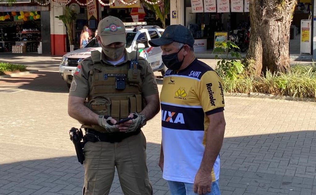 A Polícia Militar vem desempenhando um papel importante na fiscalização em Criciúma. – Temos feito fiscalizações de locais com aglomerações noturnas – comenta o tenente Giovani Fagundes dos Santos, comandante da Companhia de Patrulhamento Tático (CPT) de Criciúma. – Nós temos máscaras disponíveis nas viaturas, quando encontramos alguém sem máscara, nós entregamos uma para que a pessoa coloque – afirma.