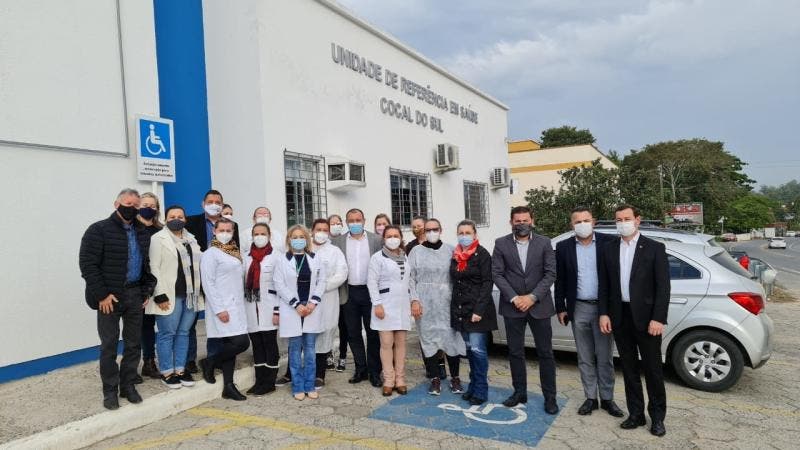 Moisés passou por uma unidade de saúde em Cocal do Sul antes do ato na SC-442. Acompanhado do prefeito Fernando de Fáveri (MDB), cumprimentou os trabalhadores da saúde.