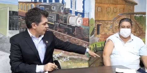 O prefeito reforçou que não existe qualquer relação entre vacina e magnetismo. – Estamos aqui trabalhando, eu e os prefeitos de todo o Brasil, pedindo a toda a população para tomar a vacina, e vem uma senhora contra a vacina, pregando que tomar a vacina pode colocar um chip no seu corpo. Pára né – disparou, dando um soco na mesa.