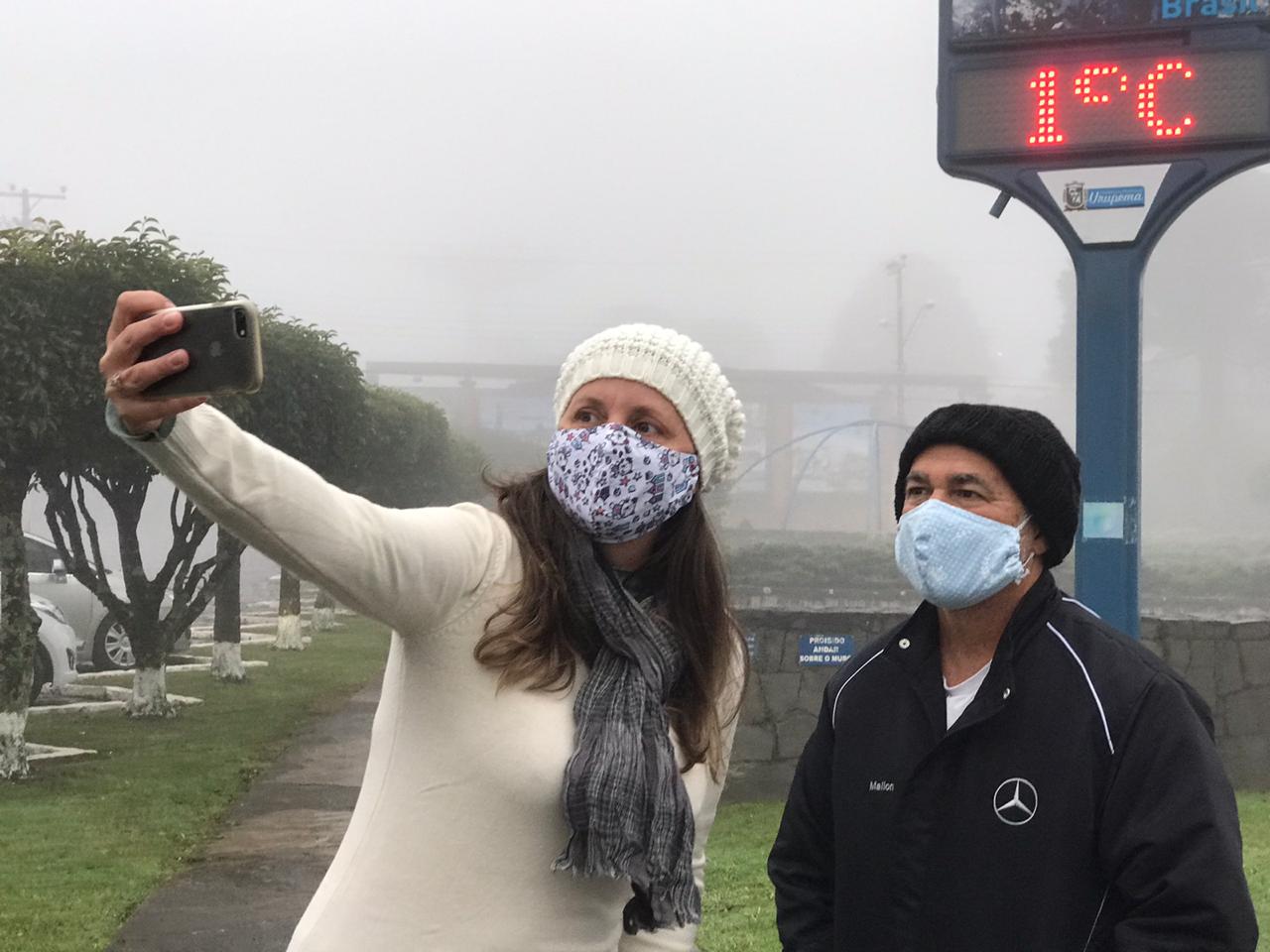 Em Urupema o ar gelado está tomando conta da cidade aos poucos. Pela manhã o termômetro de rua na praça da cidade chegou a marcar 0°C.