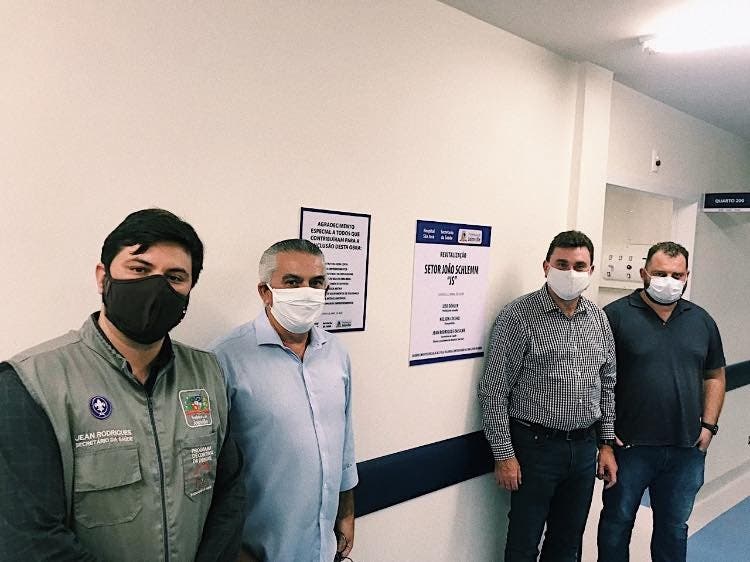 Entre as ações da Associação Empresarial de Joinville (Acij) frente à pandemia está a doação de ala com 53 leitos ao Hospital Municipal São José. A nova unidade, que começou a receber pacientes nesta segunda-feira, recebeu visita de inspeção dos vice-presidentes da associação, Marco Antonio Corsini e Marcelo Hack, acompanhados do secretário de Saúde do município, Jean Rodrigues da Silva.