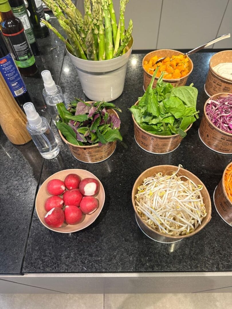 Mas afinal, o que o culinary coaching propõe? Mudanças nos hábitos alimentares, na “raiz” do preparo de alimentos. Propõe às pessoas, por exemplo, fazer a própria base de probiótico vegetal, fazer pão integral natural, usar mais vegetais como fontes de proteínas – grão de bico, lentilha e feijão – e consumir mais saladas. Para temperar, molhos naturais saudáveis.