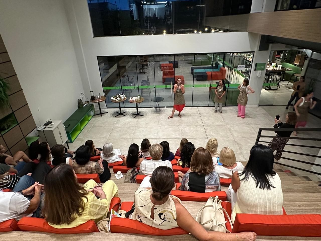 O workshop, organizado pelas fundadoras do Clube SEDO, Fernanda Bornhausen e Ana Paula Bornhausen, foi realizado há pouco mais de uma semana na Acate Downtown e contou com 30 participantes. Eles se revezaram em dois grupos para acompanhar a preparação de diversos pratos.