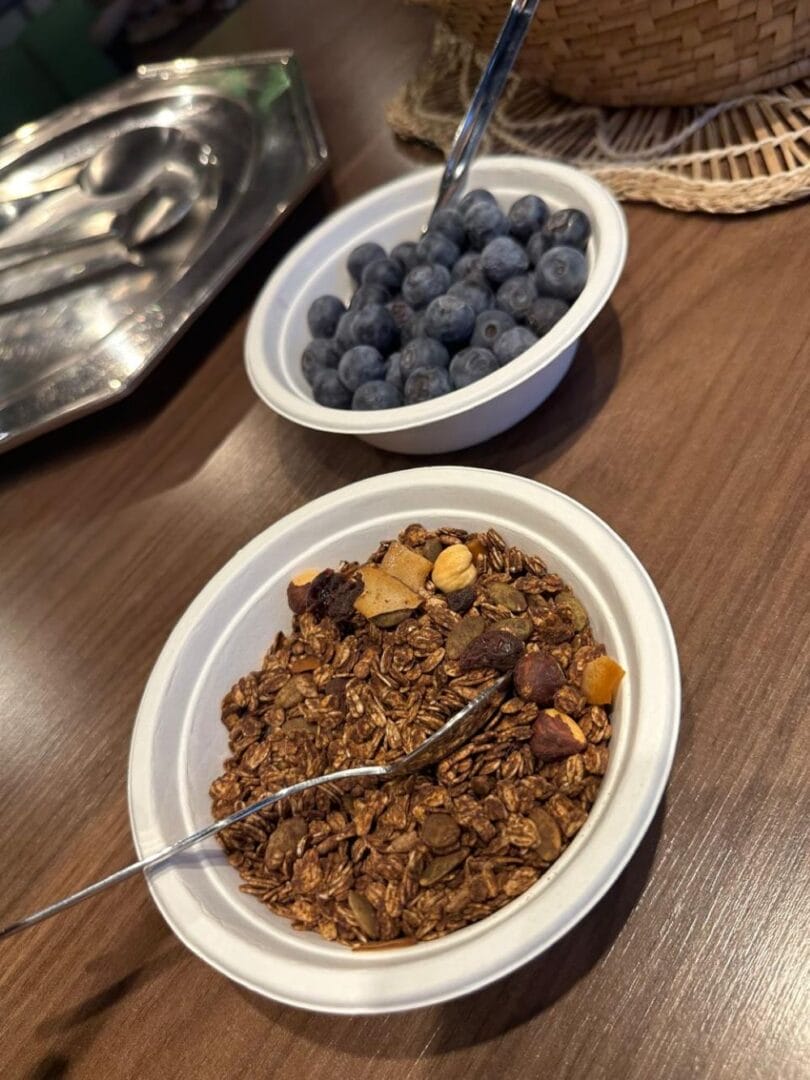 Foram feitas receitas de pão de sementes, tofupiry, quibe vegano de berinjela defumada, biomassa de banana verde, panqueca de mirtilos e salteado de grão-de-bico, espinafre e shitake (Veja três receitas dessas no final desta matéria).