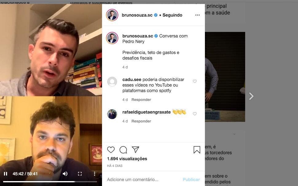 O deputado estadual Bruno Souza (Novo), que elaborou amplo substitutivo para a reforma da Previdência dos servidores do Estado, defende a continuidade da tramitação do projeto na Assembleia Legislativa, apesar de outras pautas e outros problemas, como a CPI dos respiradores e a parada por causa de caso de Covid-19. Algumas matérias podem ser analisadas e votadas virtualmente.
