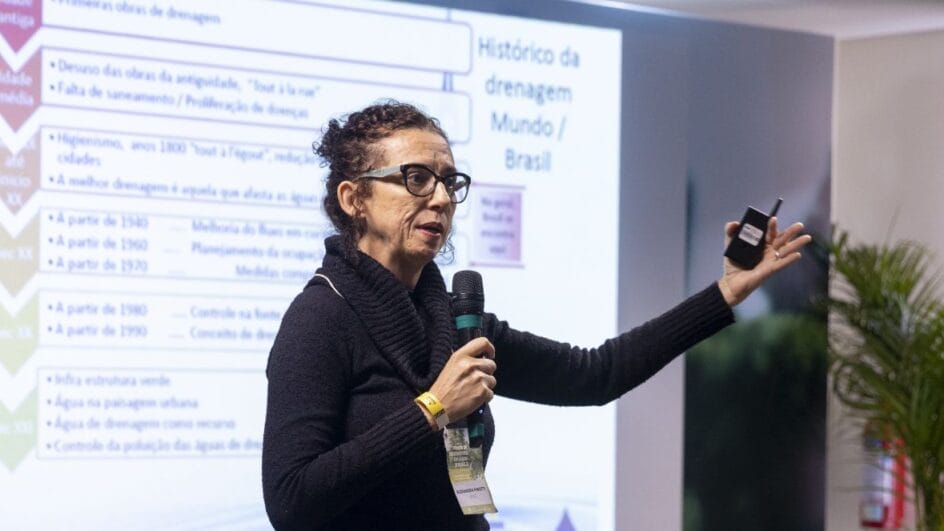 A especialista diz preferir usar o termo “manejo de águas pluviais urbanas” do que drenagem. Isso porque o termo “manejo de águas urbanas” já traz dentro dele a concepção de que não é drenar, afastar as águas rapidamente, mas sim de reordenar a disposição dessa água na bacia ou bacias da cidade.