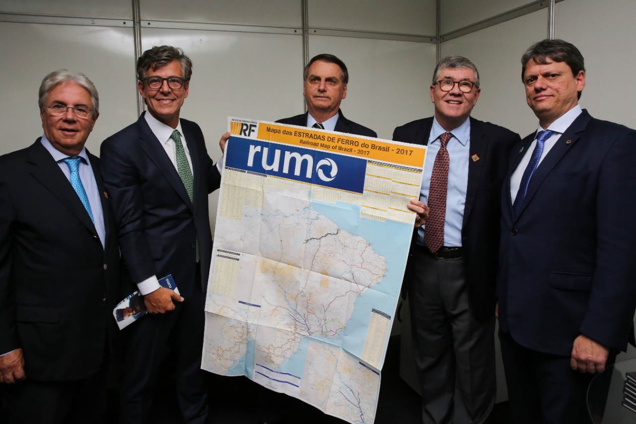 Enfim, trens entrarão nos trilhos da Ferrovia Norte-Sul. O trecho entre Porto Nacional em Tocantins a Estrela D’Oeste, em São Paulo, foi concedido nesta quarta-feira para a Rumo, maior operadora ferroviária do Brasil, controlada do Grupo Cosan, também líder em etanol e açúcar no país. No evento com o presidente Jair Bolsonaro (C ) e o ministro da Infraestrutura Tarcísio Freitas (D), participaram o presidente da Cosan, Rubens Ometto (segundo à dir.) o diretor da companhia, o catarinense Henrique Malta (E) e mais um executivo. A Rumo é a operadora das ferrovias em SC, entre Mafra e o Porto de São Francisco do Sul e da Ferrovia Tronco Sul que vai de Mafra ao Rio Grande do Sul, passando pela região de Lages.