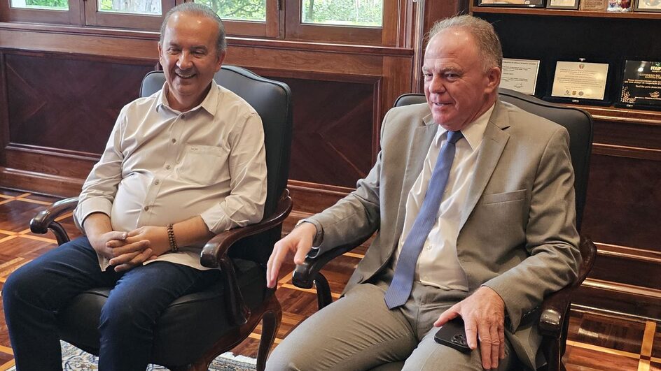 O governador Jorginho Mello (PL) recebeu na tarde desta sexta-feira a visita do governador do Espírito Santo, Renato Casagrande (PSB), que também é presidente do Consórcio Brasil Verde Governadores pelo Clima. O chefe do executivo catarinense confirmou que o Estado vai ingressar no consórcio que lidera trabalho para que todos estados elaborem plano de ação ambiental que prevê neutralização de emissões até 2050 e outras medidas.