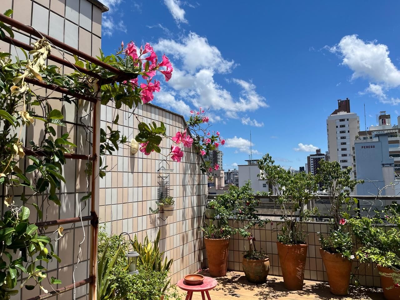 O casal cultiva uma horta com verduras, chás, plantas e flores na cobertura do edifício em que mora, com o objetivo de ter alimentos orgânicos de forma acessível.