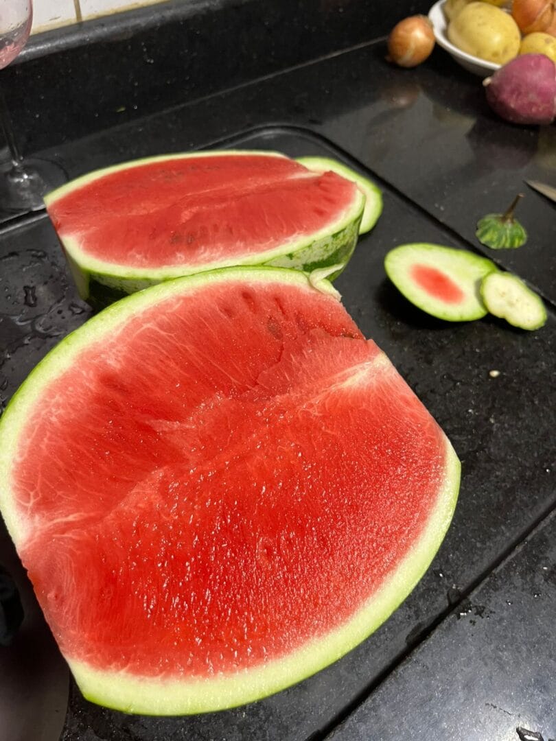 – Olha que maravilha! A melancia que estava pendurada ficou pronta e foi colhida. Muito doce, por sinal – informou o advogado e empresário que costuma incluir melancia em suco de frutas vermelhas que toma pela manhã.
