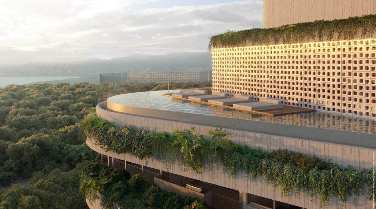 Entre os destaques das áreas comuns do empreendimento estão um rooftop com vista para o mar e para o Parque Natural do Itacorubi, piscina com borda infinita, piscina aquecida, um andar inteiro para wellness, banheira de gelo e saunas. O projeto é assinado pelo arquiteto Guilherme Torres e o paisagismo é criação de Alex Hanazaki, inspirado no Fuso Hotel.