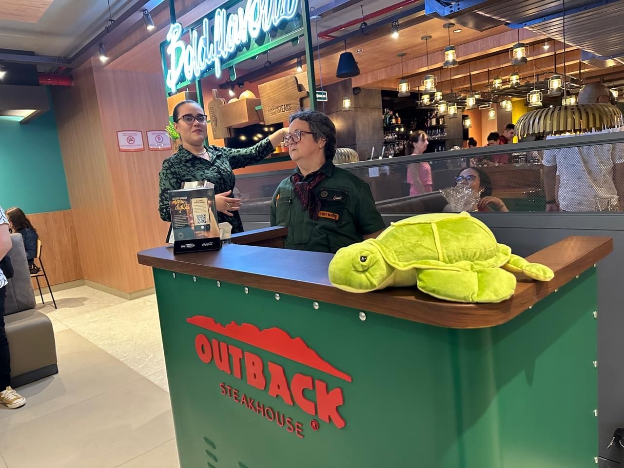 Questionada sobre as razões de sucesso da rede Outback, ela destaca que é a atenção aos clientes e os 18 temperos secretos da empresa. Na verdade, são 17 temperos mesmo e mais um, o 18º que são os colaboradores, os quais ela escolheu representá-los por tartaruguinhas.