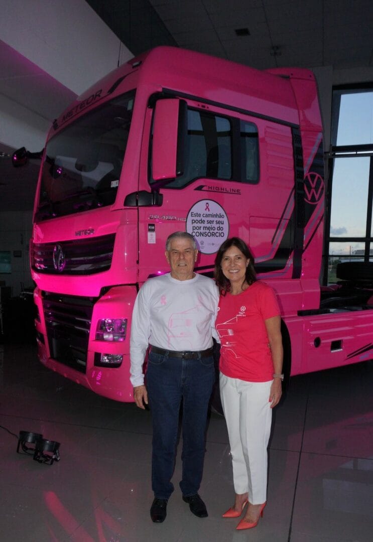 A R.F. Caminhões, empresa familiar catarinense que se tornou referência na Região Sul como concessionária Vokswagen de caminhões e ônibus – com unidades em Palhoça, Tubarão, Içara e atendimento avançado em Tijucas – celebra 40 anos neste mês de outubro. Para marcar a data, fez ações voltadas à campanha Outubro Rosa, de prevenção e tratamento de câncer de mama. A CEO da empresa, Ana Cristina Bauer, a Tina Bauer, destaca que o caminhão cor de rosa Meteor 28.480 se tornou símbolo da conscientização contra o câncer.