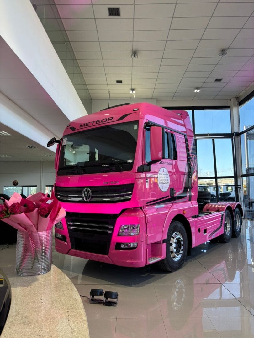 Ainda sobre o caminhão rosa, Tina Bauer diz que esse modelo está à venda. É um caminhão para a família. Os caminhões rosas estão com mais presença nas estradas brasileiras, principalmente por escolhas de mulheres que dirigem.