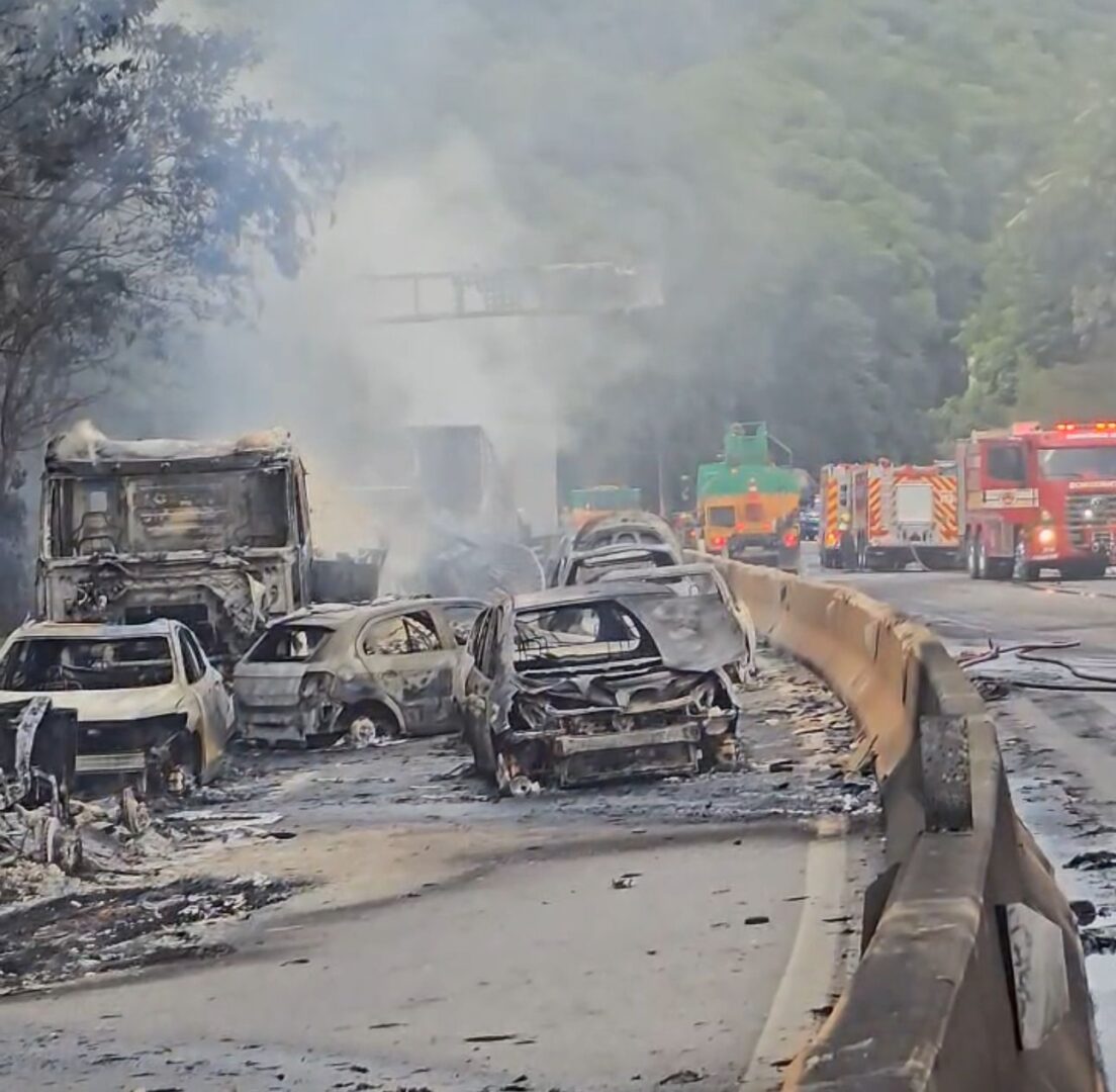 VÍDEO: Fogo se alastra após explosão de carreta na BR-101, incendeia 25 veículos e deixa feridos