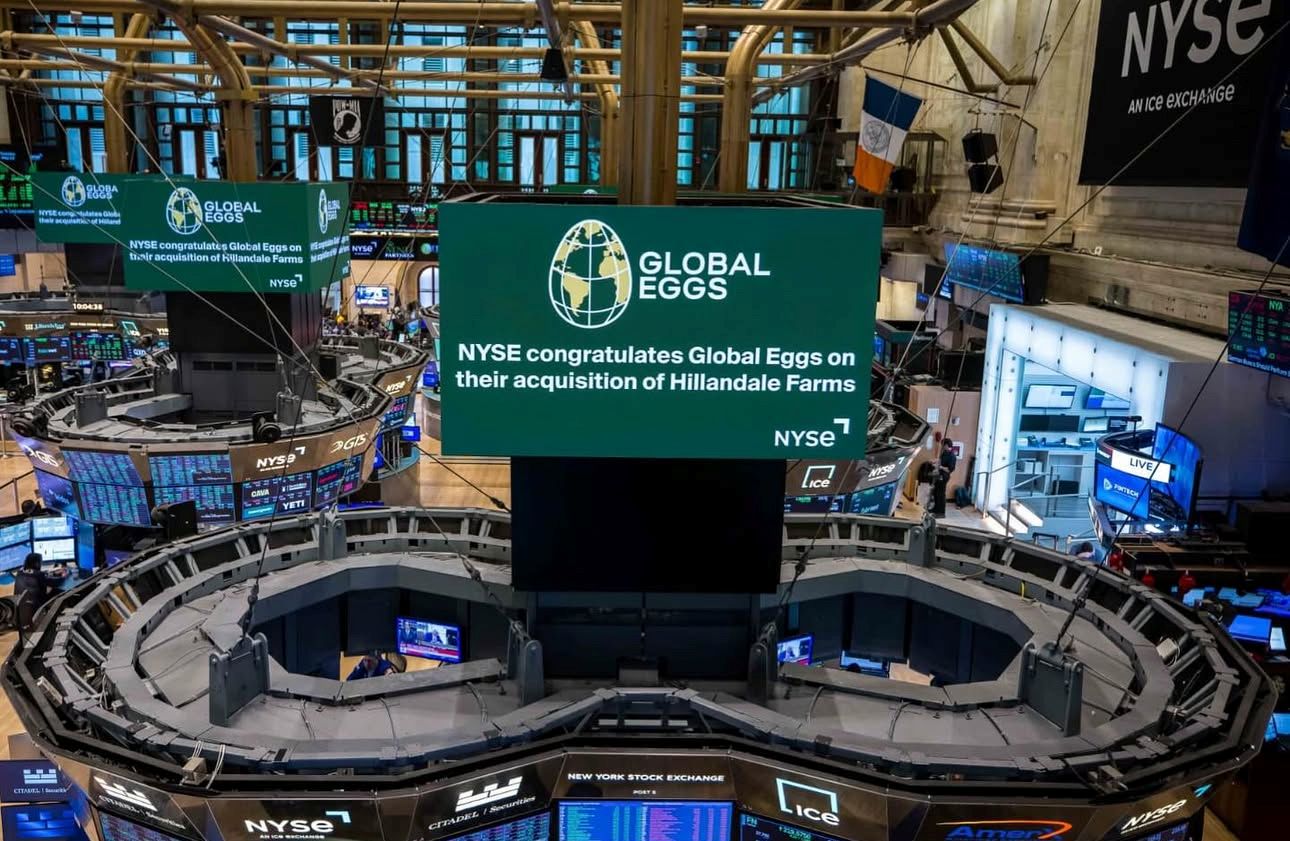 Um dia após a realização do primeiro SC Day em Nova York, a Global Eggs, holding do bilionário catarinense Ricardo Faria, o ‘Rei do Ovo’, anunciou nesta terça-feira que teve a confirmação da finalização da aquisição da empresa americana Hillandale Farms, produtora de ovos, por US$ 1,1 bilhão. O empresário, que participou do SC Day, celebrou o fechamento do negócio na noite desta terça-feira divulgando a mensagem de boas-vindas da icônica bolsa de Nova York, a NYSE (New York Stock Exchange), onde a companhia está listada. “NYSE parabeniza a Global Eggs pela aquisição da Hilandale Farms”, afirmou a bolsa em seu painel digital.
